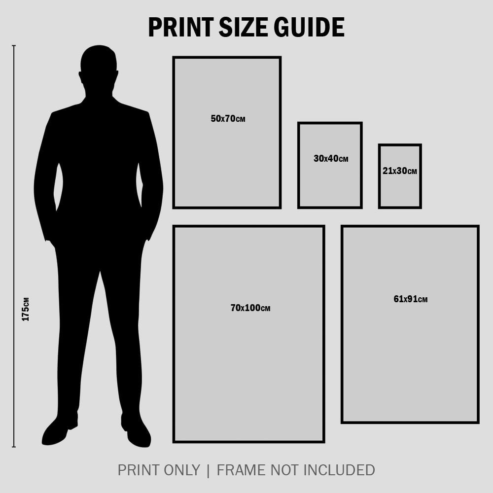 Available in a range of ready-to-frame sizes. Prints are packed and shipped in a strong and durable poster tube.